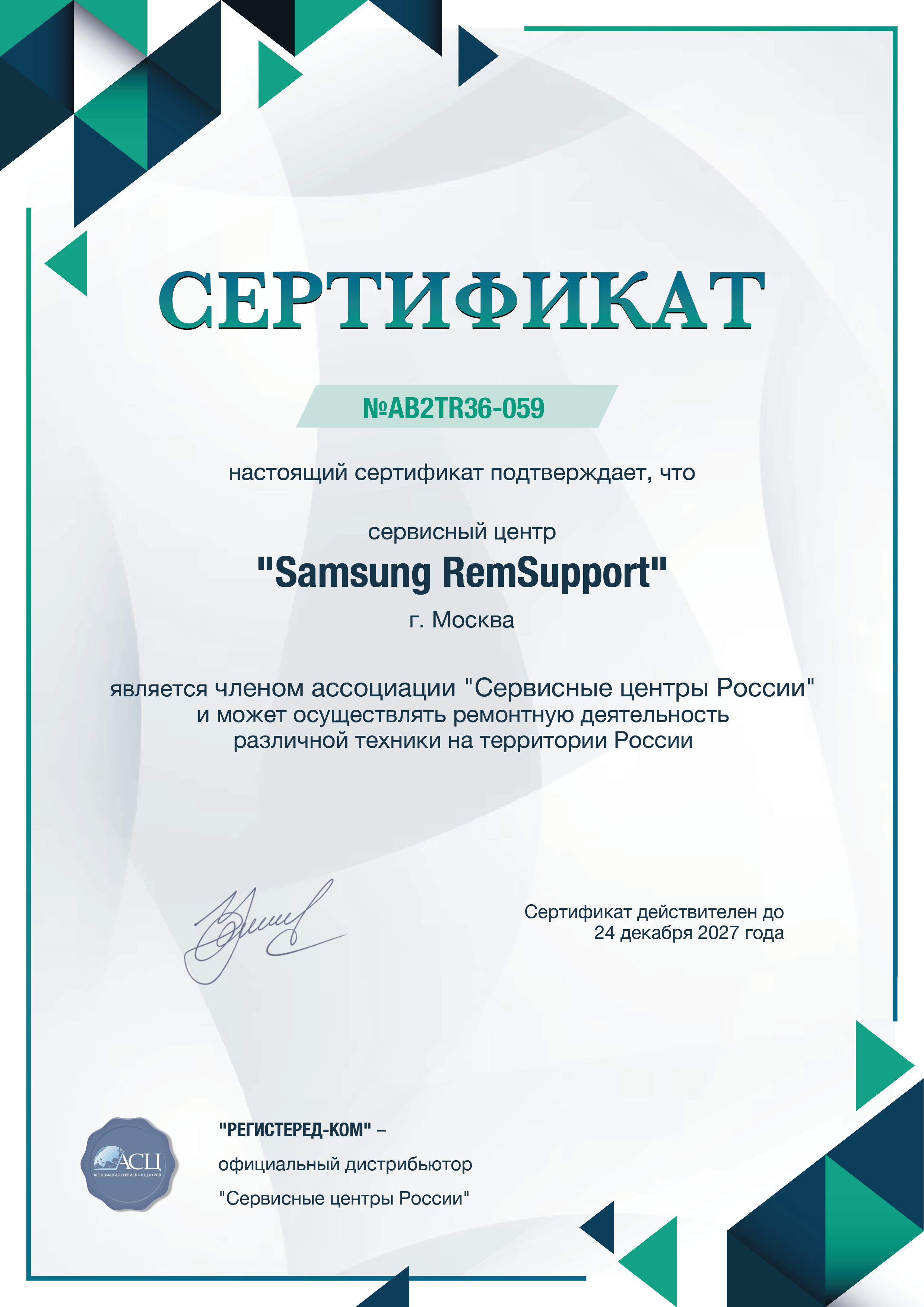 Сервисный центр Samsung RemSupport в Самаре специализируется на обслуживании вертикальных пылесосов Samsung, где особенно важны точность и профессиональный подход. Наличие профильных сертификатов подтверждает, что мы используем проверенные методы диагностики, современное оборудование и соблюдаем технические стандарты при работе с вертикальными пылесосами. Это позволяет корректно выявлять неисправности и выполнять ремонт без риска для чувствительных компонентов устройства.